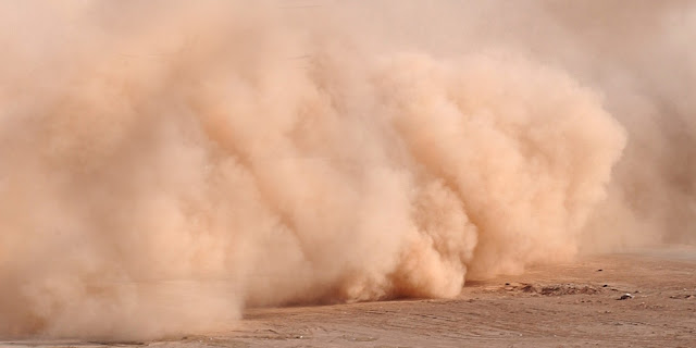 Top picture attribution: (Cropped and edited dust/sand cloud made by the United States 3rd Marine Aircraft Wing, [Public Domain] via Creative Commons).